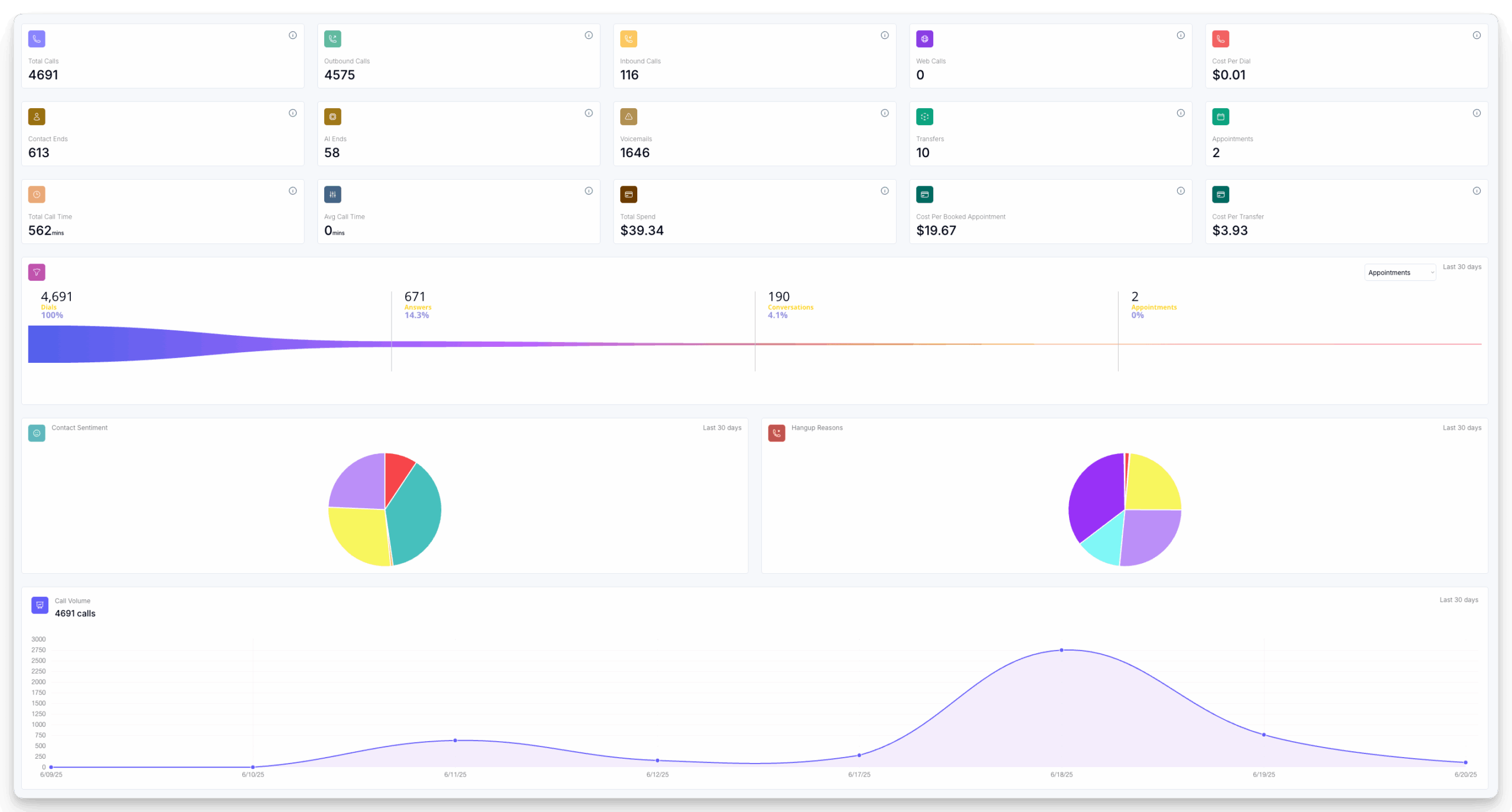 Want to know exactly how your firm engages with leads and clients? With AI Receptionist Accounting, you’ll get complete visibility across every communication channel. Access real-time data on call transcripts, durations, costs, outcomes, and client intent—all from one unified dashboard. Whether it’s phone calls, texts, or chat conversations, our platform empowers you with actionable insights to improve efficiency, accountability, and ROI.